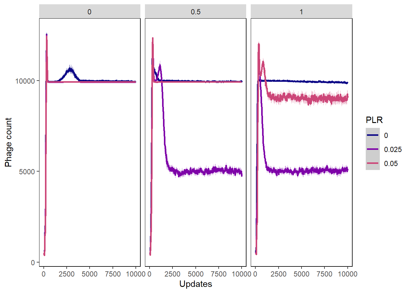 ylab("Phage count") + xlab("Updates") +