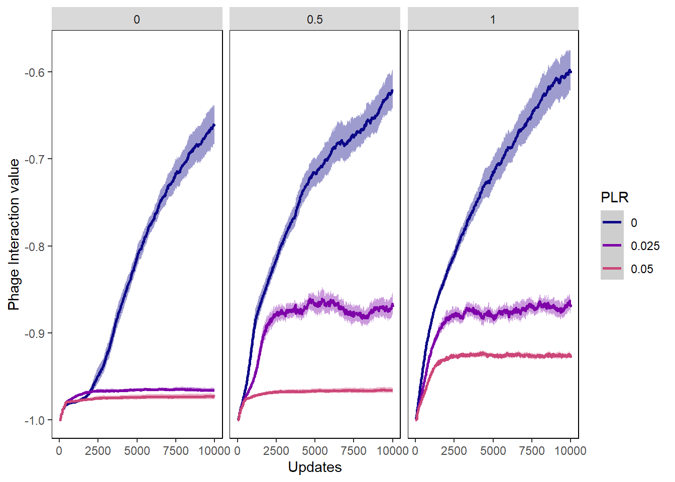 ylab("Phage Interaction value") + xlab("Updates") +