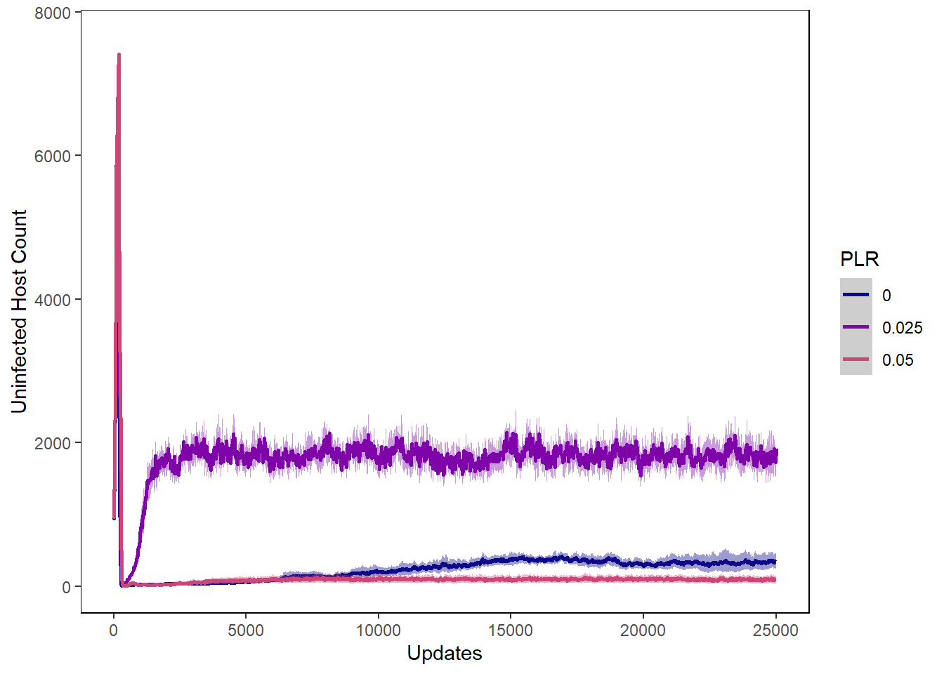 ylab("Uninfected Host Count") + xlab("Updates") +