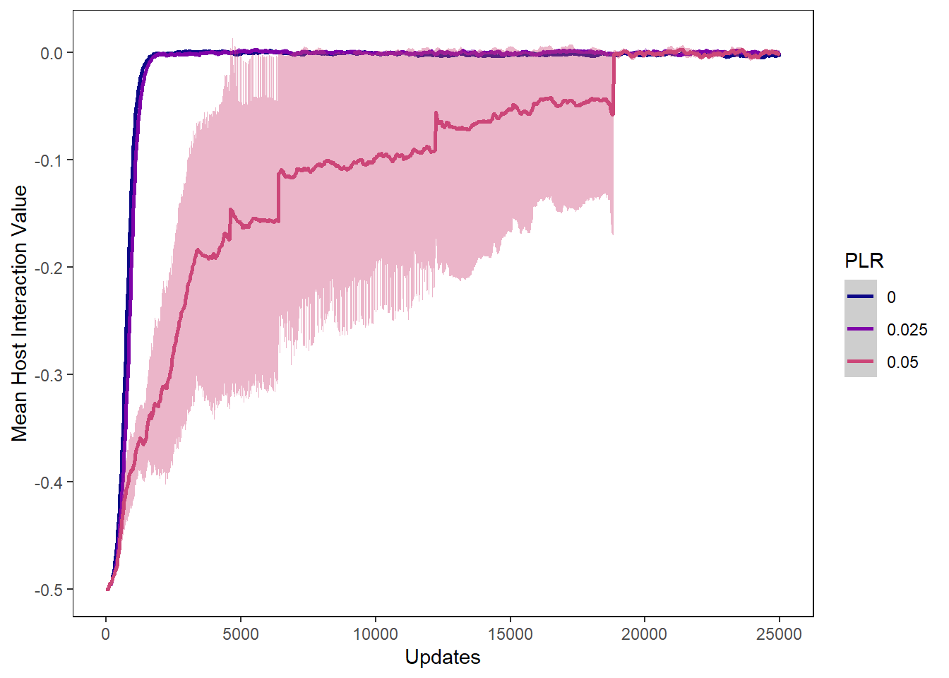 ylab("Mean Host Interaction Value") + xlab("Updates") +