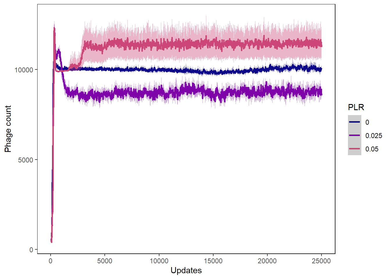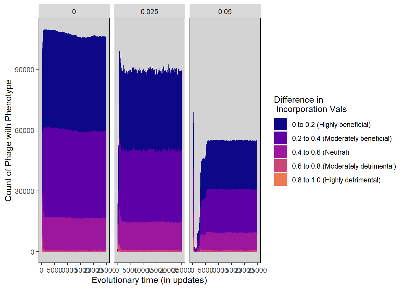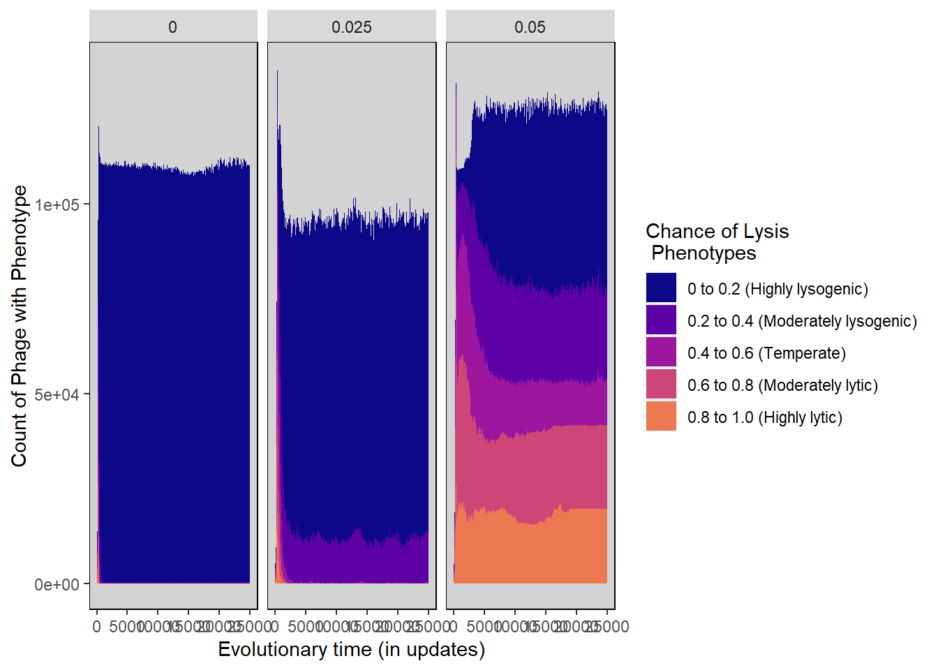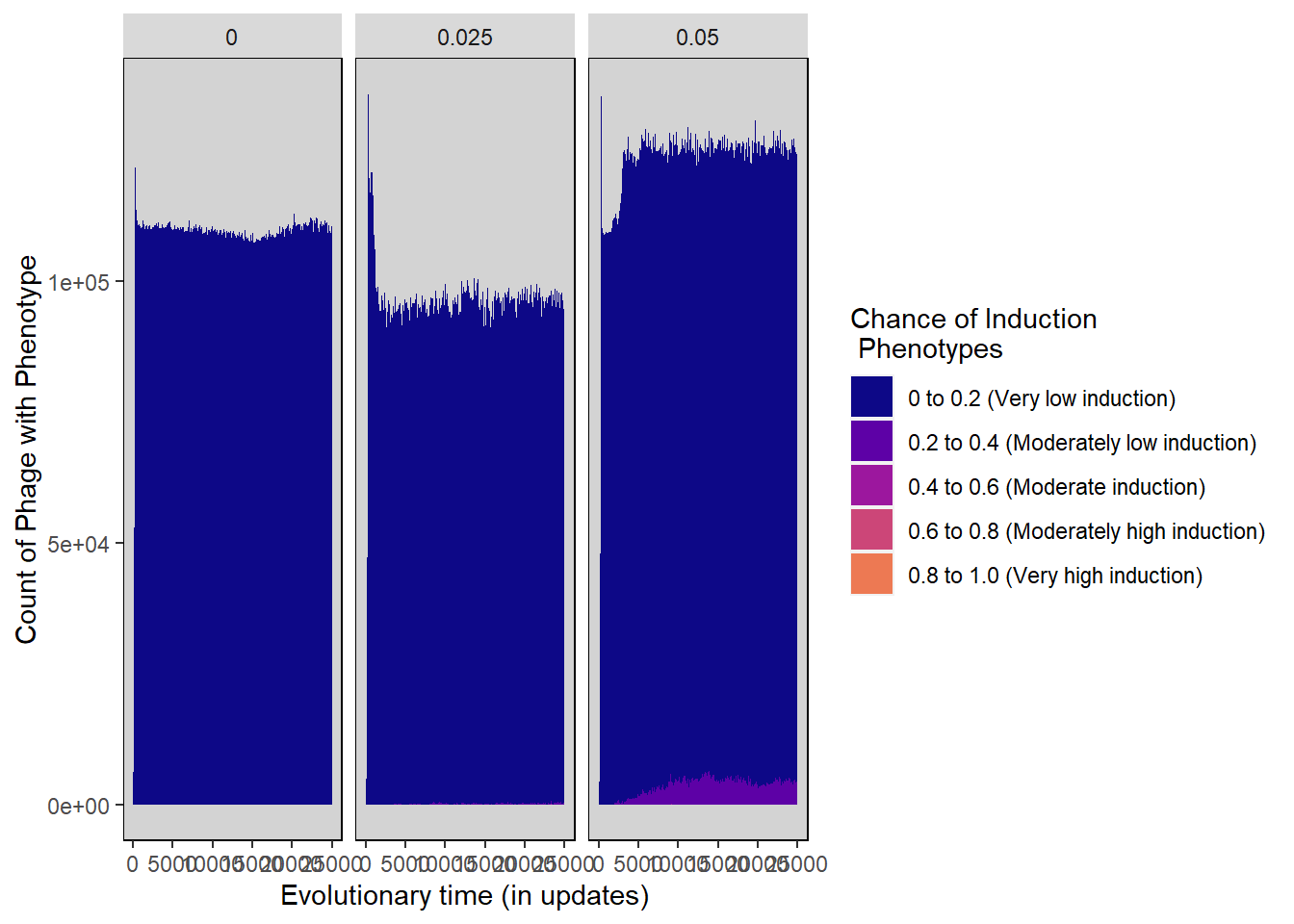 ylab("Count of Phage with Phenotype") + xlab("Evolutionary time (in updates)") +