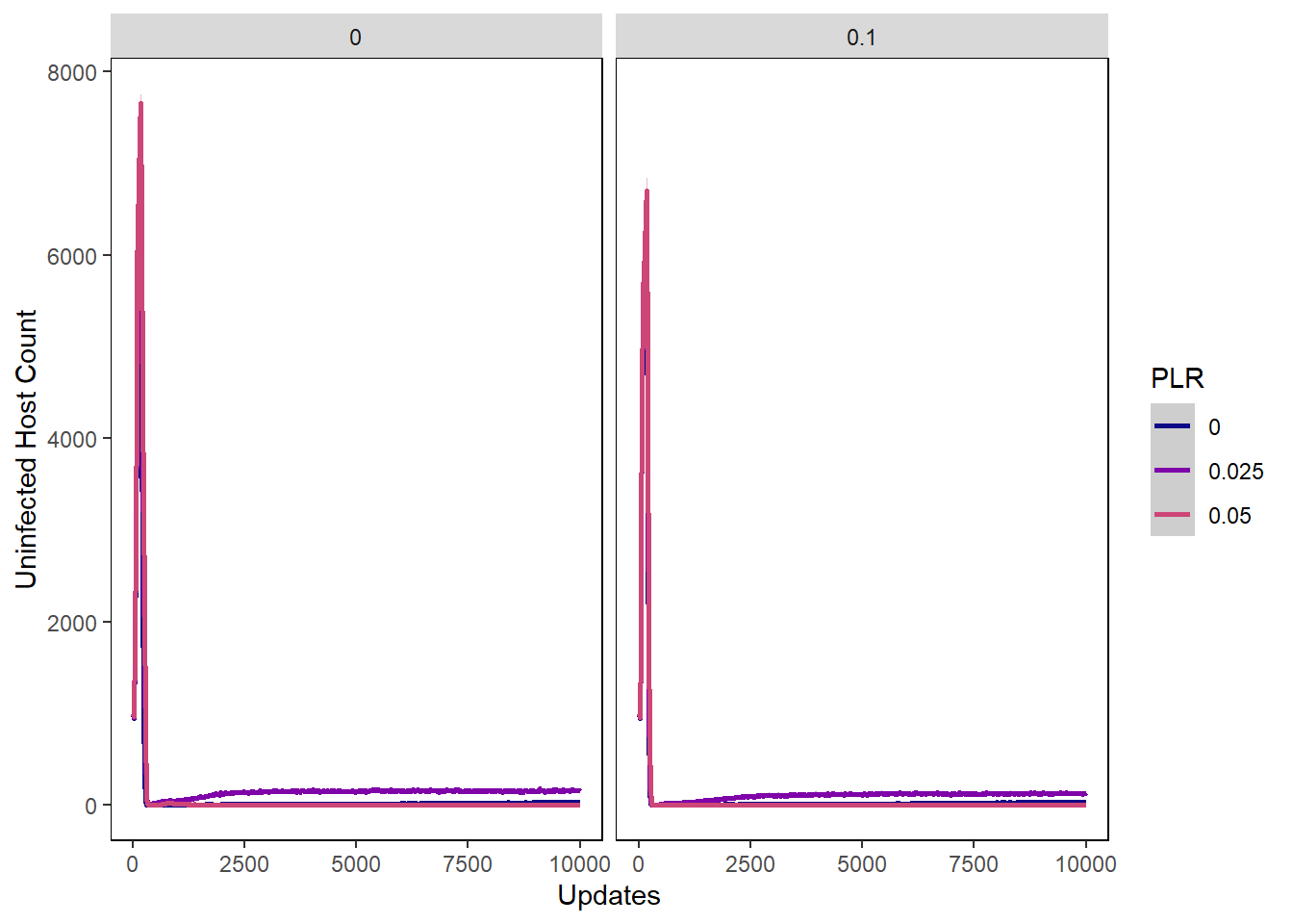 ylab("Uninfected Host Count") + xlab("Updates") +