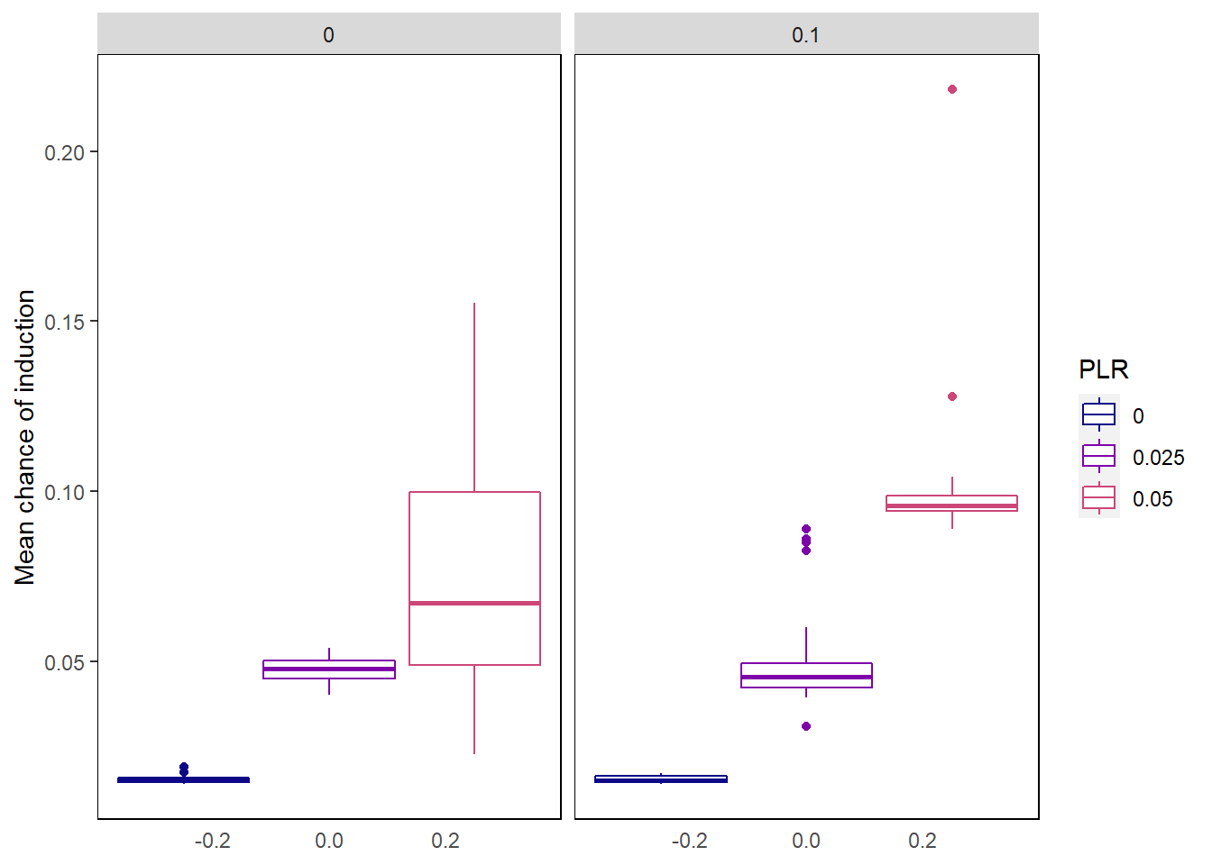#At a chance of induction of 0%, compare PLR 0% to PLR 2.5%